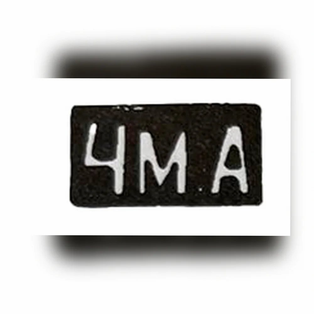 - «4МА»: состоит из цифры «4» и двух заглавных букв «МА», также в прямоугольнике.