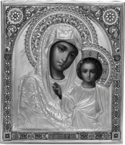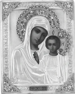 - Серебряные оклады для икон: Изготавливались из серебра 84-й и 88-й пробы (что соответствует примерно 875 и 916 пробам по метрической системе), украшались филигранной эмалью. В основном использовалась техника клуазоне (перегородчатая эмаль) или выемчатая эмаль, создающая яркие, насыщенные орнаменты.