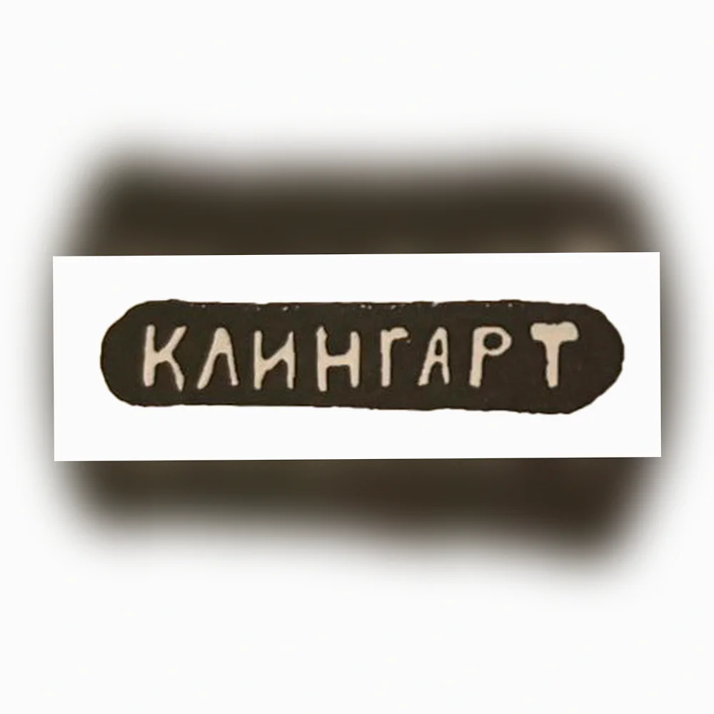 - «КЛИНГАРТ» в прямоугольнике с закругленными углами: Полное написание фамилии мастера кириллицей, часто на крупных предметах или в определенные периоды.
