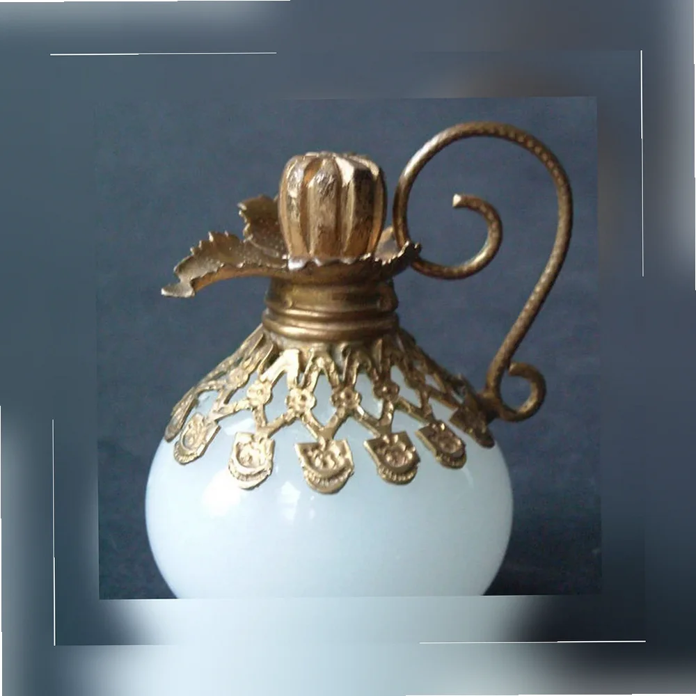 - Металлические оправы и оплетки: Часто встречались на сувенирных и дорожных флаконах, защищая стекло и добавляя декоративность. Использовались серебро, латунь, мельхиор.